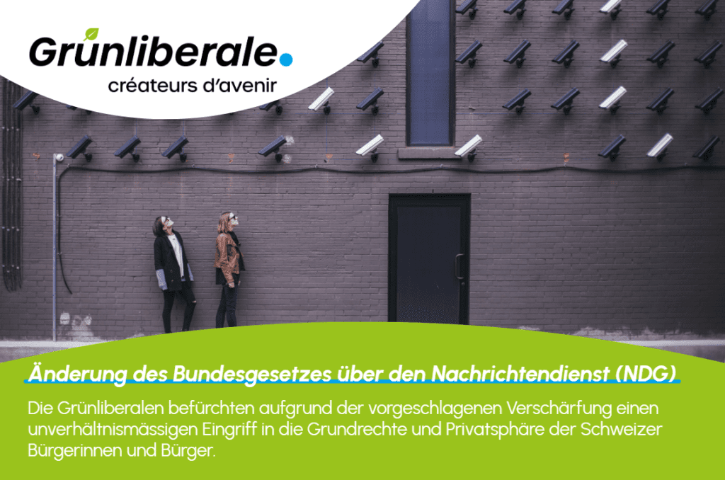 Die Grünliberalen betrachten die nachrichtendienstliche Arbeit und eine zweck- und verhältnismässige Überwachung als notwendig, befürchten allerdings aufgrund der vorgeschlagenen Verschärfung einen unverhältnismässigen Eingriff in die Grundrechte und Privatsphäre der Schweizer Bürgerinnen und Bürger. Als zusätzlich beunruhigend erachten wir das Zusammenspiel der vorliegenden NDG-Revision mit der erst kürzlich erfolgten Revision der Verordnungen des Bundesgesetzes über die Überwachung des Post- und Fernmeldeverkehr (BÜPF), wodurch auch die Befugnisse des Nachrichtendienstes des Bundes (NDB) erweitert werden sollen. In der Praxis sollten Daten, die zu Verwaltungs-zwecken (wie bei jeder staatlichen Stelle) erhoben werden, klar von nachrichtendienstlichen Daten getrennt werden. Die Verfahren zur Verwaltung und Archivierung der Daten müssen klar definiert und angewandt werden. Das verwendete Informationssystem sollte diese strikte Verwaltung unterstützen.
