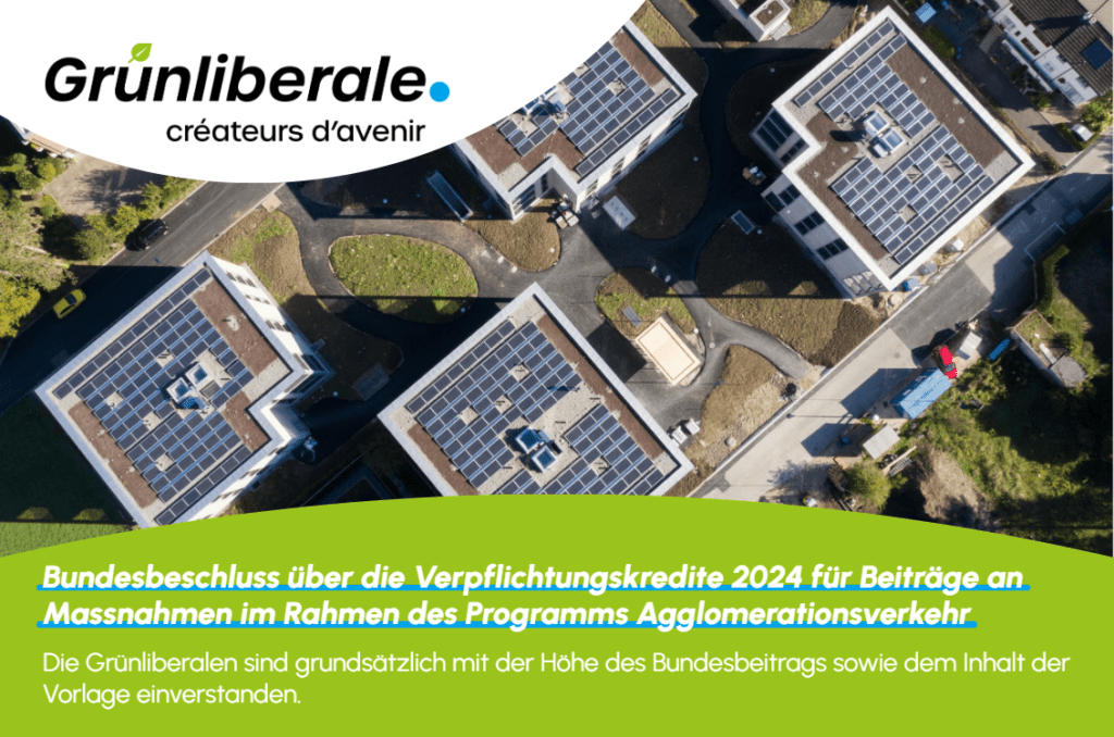 Die Grünliberalen sind allgemein mit der Höhe des Bundesbeitrags sowie dem Inhalt der Vorlage einverstanden. Wir begrüssen grundsätzlich die Vorlage für den Verpflichtungskredit für die 4. Generation der Agglomerationsprogramme. Die geförderten Projekte tragen zu einer besseren Vernetzung bei, erhöhen die Verkehrssicherheit und sorgen dafür, dass die Umwelt weniger belastet wird.