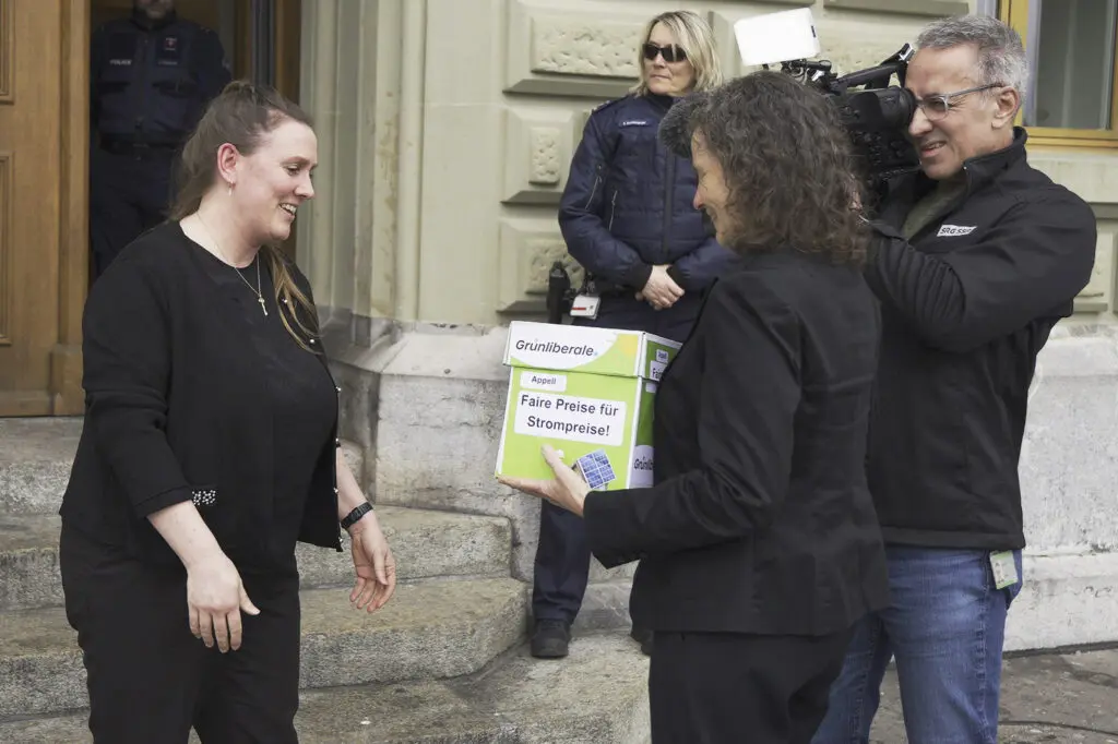 Nationalrätin Barbara Schaffner übergab heute zusammen mit weiteren GLP-Mitgliedern und -Sympathisanten den Appell «Faire Preise für Solarstrom» der Bundeskanzlei. Darin fordern die Unterzeichnerinnen und Unterzeichner faire Konditionen für die Einspeisung und die lokale Nutzung von Sonnenstrom.
